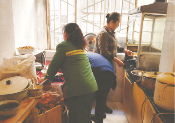 在張掖路步行街工作的保潔員們,中午外出吃飯花費較高,而帶飯又不方便,尤其天熱了飯容易壞。為了節(jié)省開支,張掖路的員工們午飯常常是應付為主。為解決職工“吃飯難”的問題,張掖路分公司經理想出這樣一招,每天中午親自為員工做飯吃,不僅方便了職工生活,還帶給員工家一般的溫馨。