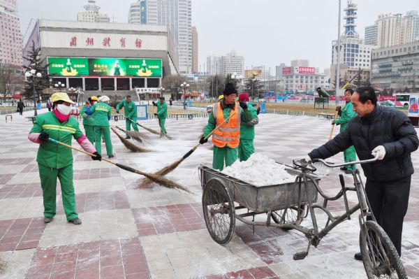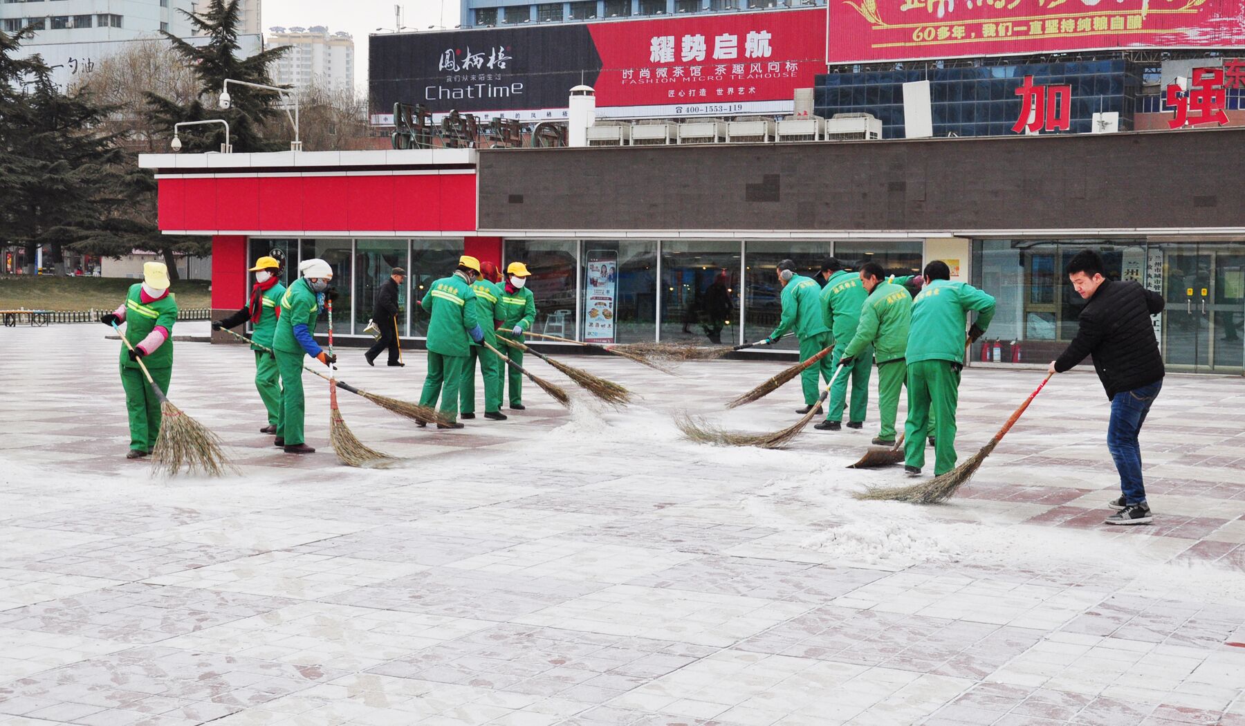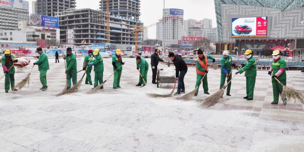 雖然雪下的不大,但氣溫驟降、風(fēng)雪交加還是給掃雪人員帶來了諸多不便,可這沒有影響各項目部團隊清理積雪的熱情,在項目經(jīng)理的帶領(lǐng)下,各班組成員對自己主管的片區(qū)進行認真清掃,確保能夠在業(yè)主上班前讓各主干路內(nèi)的行人及車輛暢通無阻,把下雪帶來的影響降至最低。