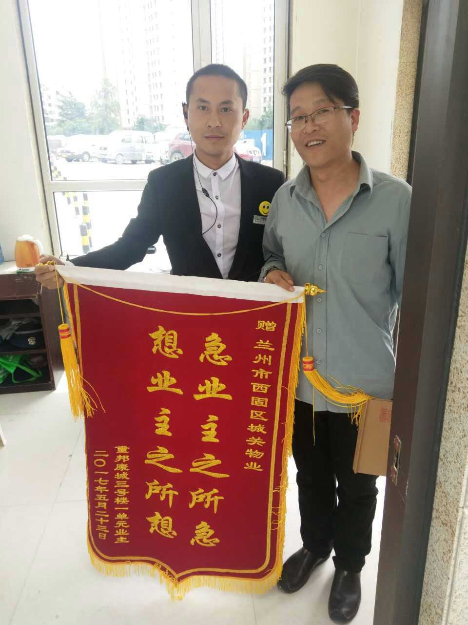 5月24日上午11點(diǎn)左右,重邦康城小區(qū)一戶業(yè)主將一副題為“急業(yè)主之所急,想業(yè)主之所想”的錦旗送到了物業(yè)辦公室,感謝物業(yè)人員在干好本質(zhì)工作的同時,積極熱心的幫忙尋找自家的小狗。該業(yè)主強(qiáng)調(diào),自從入住這個小區(qū)以來,每一天都過的很舒心,城關(guān)物業(yè)工作人員專業(yè)素質(zhì)強(qiáng),服務(wù)熱情周到。在得知小狗丟了的情況下,積極主動的安排人員幫忙尋找,并最終找到小狗。感謝城關(guān)物業(yè)提供如此優(yōu)質(zhì)、貼心、專業(yè)的服務(wù)。田曉晨經(jīng)理說道,業(yè)主的事不論大小,只要有需要,我們定會全力以赴。