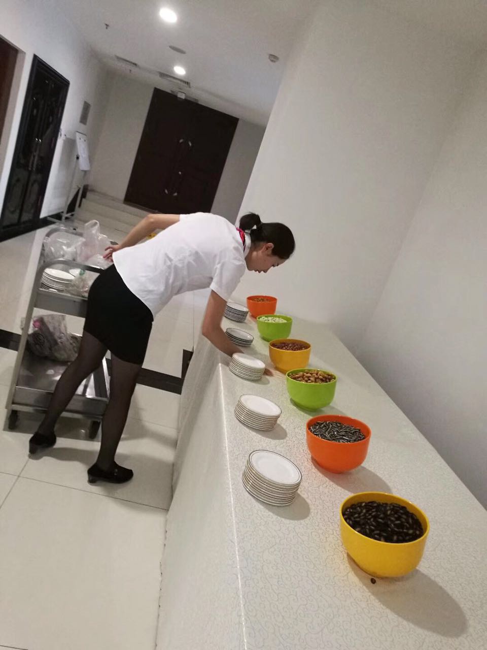 為了保障本次會(huì)議的順利召開(kāi),省高法項(xiàng)目部在接到通知后,全體員工放棄了周末休息,全員到崗為本次會(huì)議提前做準(zhǔn)備。從綠化、外圍、水電、到樓內(nèi)各區(qū)間衛(wèi)生均認(rèn)真排查,并于8月22日晚結(jié)束全部準(zhǔn)備工作。由于本次會(huì)議規(guī)格高、要求高,省高法項(xiàng)目部除了要承擔(dān)會(huì)議的基本布置接待外,還需在會(huì)議休息間歇準(zhǔn)備茶點(diǎn)。為了給外地參會(huì)領(lǐng)導(dǎo)留下美好的印象,省高法項(xiàng)目部專門(mén)選擇了具有蘭州特色的白粉桃、巴梨、黃河密等水果,配以蘭州特色糕點(diǎn)和干果作為茶歇區(qū)小點(diǎn),品種多樣的小食水果讓前來(lái)參會(huì)的領(lǐng)導(dǎo)紛紛贊不絕口。