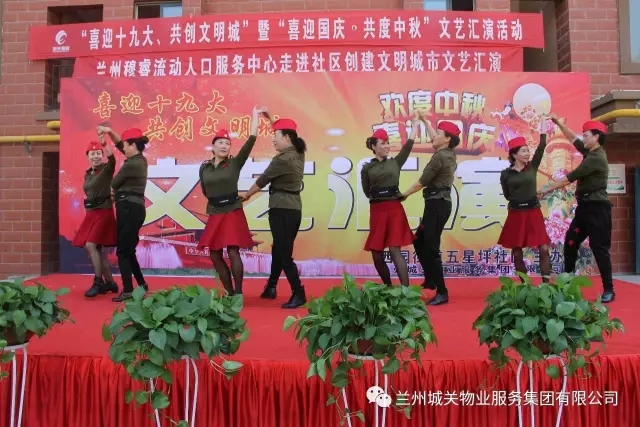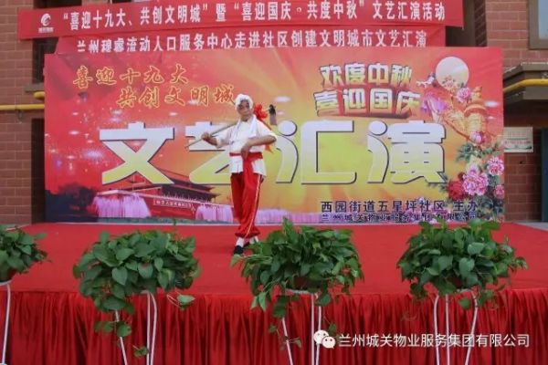 為了迎接黨的十九大勝利召開,積極配合創(chuàng)建全國文明城市工作的開展,豐富業(yè)主的文化生活,在“雙節(jié)”來臨之際,城關(guān)物業(yè)服務(wù)集團(tuán)中石油項目部聯(lián)合五星坪社區(qū)共同舉辦了“喜迎十九大”文藝匯演。