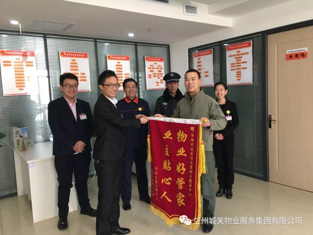 近日,金達(dá)商務(wù)大廈24樓業(yè)主將題有“真誠(chéng)服務(wù),品德高尚”、“物業(yè)好管家,業(yè)主貼心人”的兩面錦旗送至華峰利達(dá)物業(yè)公司,并對(duì)工作人員心系業(yè)主、認(rèn)真負(fù)責(zé)的工作態(tài)度表示了肯定和感謝。