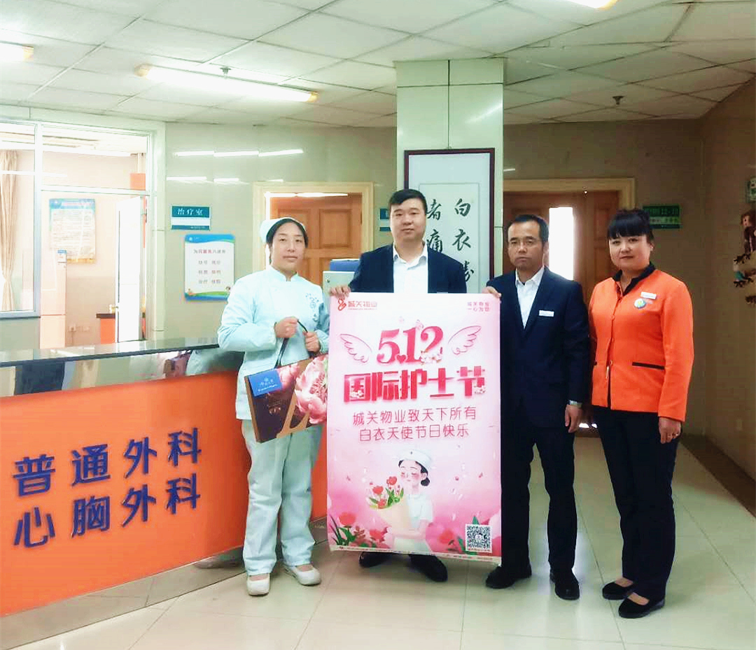 蘭州城關(guān)物業(yè)服務(wù)集團(tuán)有限公司服務(wù)業(yè)態(tài)多樣,目前主要有住宅類、城市管理類、寫字樓類、醫(yī)院類、院校類、其他類等。此次, 值此5·12國際護(hù)士節(jié),蘭州城關(guān)物業(yè)醫(yī)院類事業(yè)部與白衣天使進(jìn)行了一場美麗的約會,我們特別組織舉辦了相關(guān)慰問活動(dòng),分別向蘭大一院、蘭大二院、肺科醫(yī)院等各科室護(hù)士贈(zèng)送了禮品及鮮花,為這些始終堅(jiān)守一線的白衣天使送去節(jié)日的祝福,此舉獲得了院方領(lǐng)導(dǎo)的一致好評及贊譽(yù)。