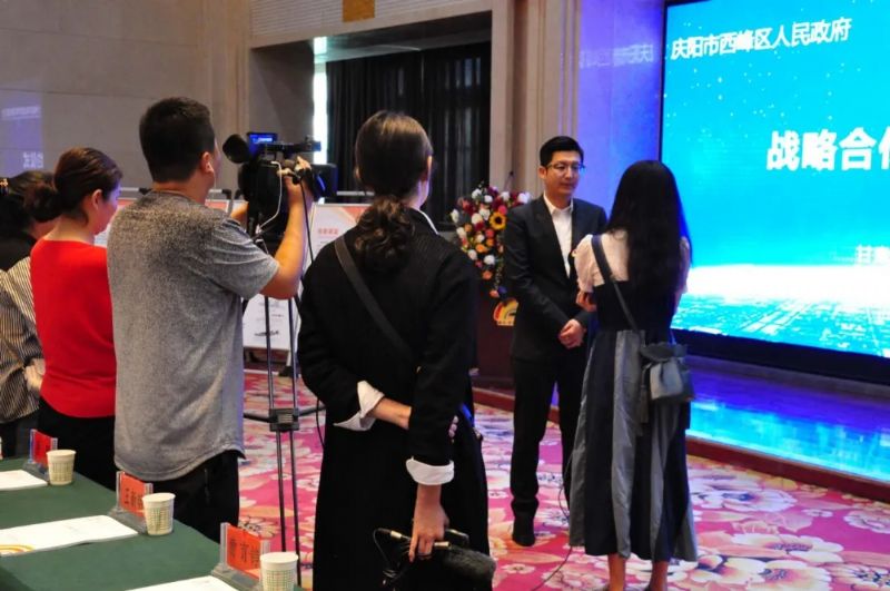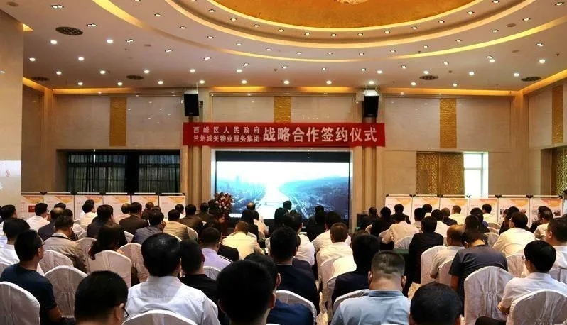 參會人員觀看城關(guān)物業(yè)公司宣傳片及全域無垃圾專項治理投資項目示范案例視頻后,慶陽市西峰區(qū)區(qū)委常委、常務(wù)副區(qū)長李廷位、蘭州城關(guān)物業(yè)服務(wù)集團有限公司總裁楊佳林代表雙方簽訂合作協(xié)議。