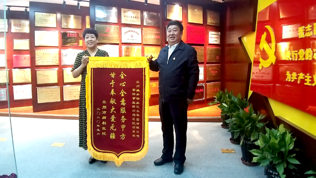 蘭州市肺科醫(yī)院陳副院長、總務(wù)科楊科長等一行人員專程前往蘭州城關(guān)物業(yè)服務(wù)集團(tuán)有限公司,陳院長將一面鐫寫著“全心全意服務(wù)甲方,甘于奉獻(xiàn)大愛無私”的錦旗鄭重交到蘭州城關(guān)物業(yè)服務(wù)集團(tuán)有限公司董事長楊民召先生手中。陳院長表示,蘭州市肺科醫(yī)院作為新冠肺炎省級(jí)定點(diǎn)收治醫(yī)院,在此次疫情期間承擔(dān)了巨大的風(fēng)險(xiǎn)和繁重的任務(wù),感謝城關(guān)物業(yè)在疫情防控期間,全力以赴協(xié)助肺科醫(yī)院做好疫情防控和后勤保障工作,切實(shí)與醫(yī)院一同守好疫情防控的第一道關(guān)口。