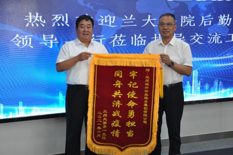 蘭州大學第一醫(yī)院后勤保障處陳處長一行人專程來到蘭州城關物業(yè)服務集團有限公司,將一面寫有“牢記使命勇?lián)?nbsp;同舟共濟戰(zhàn)疫情”的錦旗贈予蘭州城關物業(yè)服務集團有限公司,以此表達對城關物業(yè)的感謝和認可。