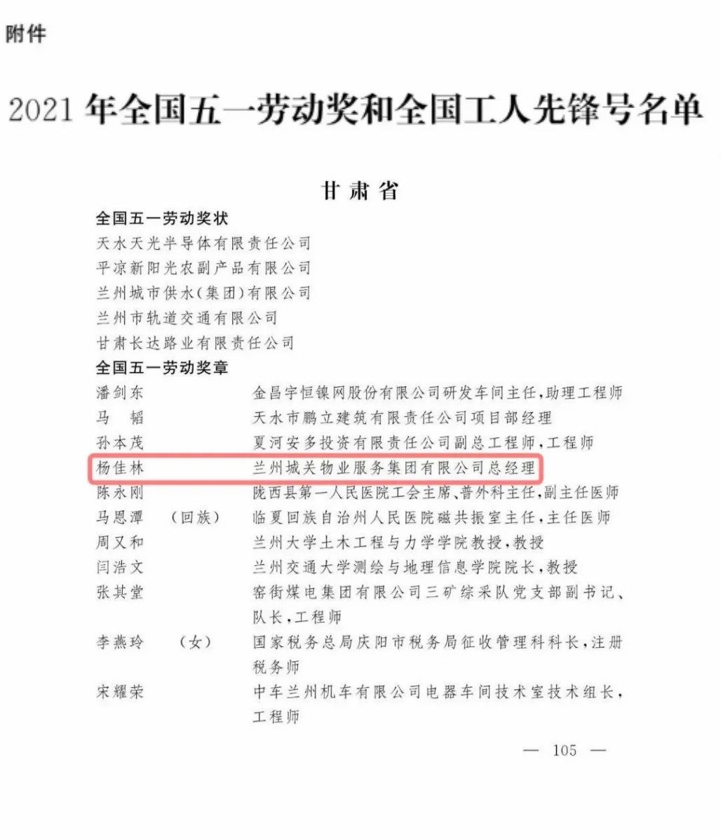 作為一名年輕的企業(yè)家,楊佳林在企業(yè)中積極推動“黨工共建”,實現(xiàn)企業(yè)民主管理的制度化、常態(tài)化,在全面打贏脫貧攻堅戰(zhàn)的過程中,蘭州城關物業(yè)主動對接貧困山區(qū),充分挖掘社區(qū)消費潛力,建立消費扶貧產品的“綠色通道”,以實際行動助力鄉(xiāng)村振興。正是因為楊佳林對社會和時代的責任感,在他的帶領下,蘭州城關物業(yè)先后獲得“全國五一勞動獎狀”“全省非公經濟黨建示范點”等300余項榮譽,楊佳林本人也相繼獲得了 “甘肅省五一勞動獎章”、“甘肅物業(yè)行業(yè)貢獻獎”、“甘肅省技術標兵”、全省百萬職工職業(yè)技能素質提升活動“優(yōu)秀組織者”、蘭州市首批“金城創(chuàng)新創(chuàng)業(yè)非公企業(yè)家”等多項榮譽。